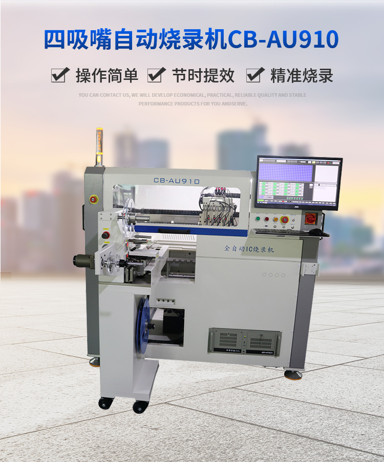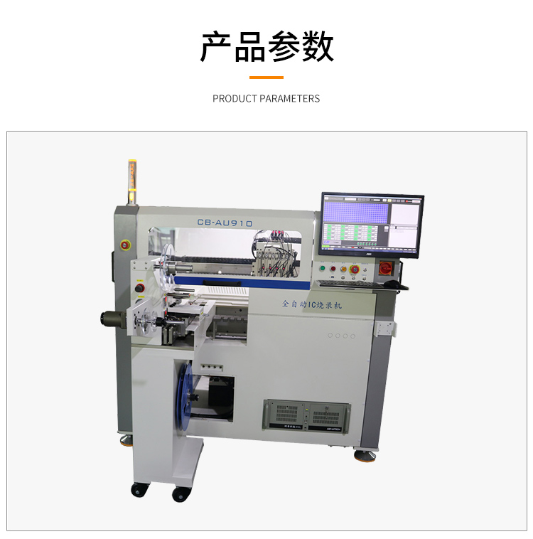可以烧录三种不同包装的IC,管装,托盘,卷带。可以烧录完成后变换包装方式。具有烧录完成标记功能,可打点,喷码。配备高清CCD两个,定位准确。托盘包装可实现自动上料,收料。有异常状况会自动报警。光学定位系统。所有的零部件采用进口配件。