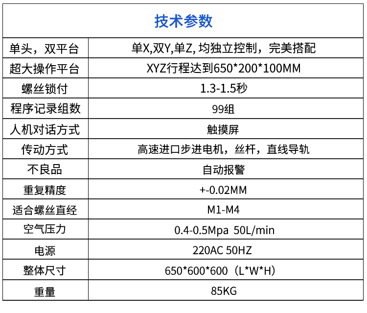 单头双平台自动螺丝机